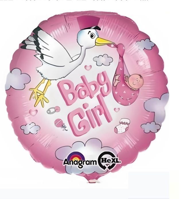 Folija balons round print 18"/45cm 1/1gab Baby Girl Stork