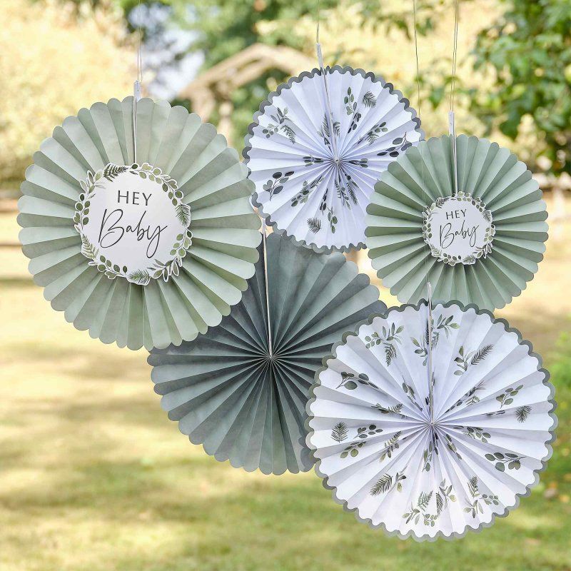 Dekoratīvas rozetes Hey Baby Shower zaļas 10-13,5cm 1/5gab papīra