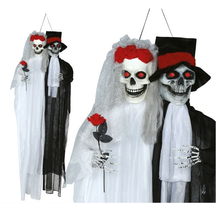 Piekarināma dekorācija Jaunlaulāto skeleti ar skaņu/spīdošām acīm180cm HLV