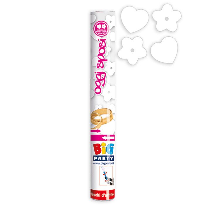 Plaukšķene Just Married ar papīra sirsniņām un baltiem ziediem 30cm