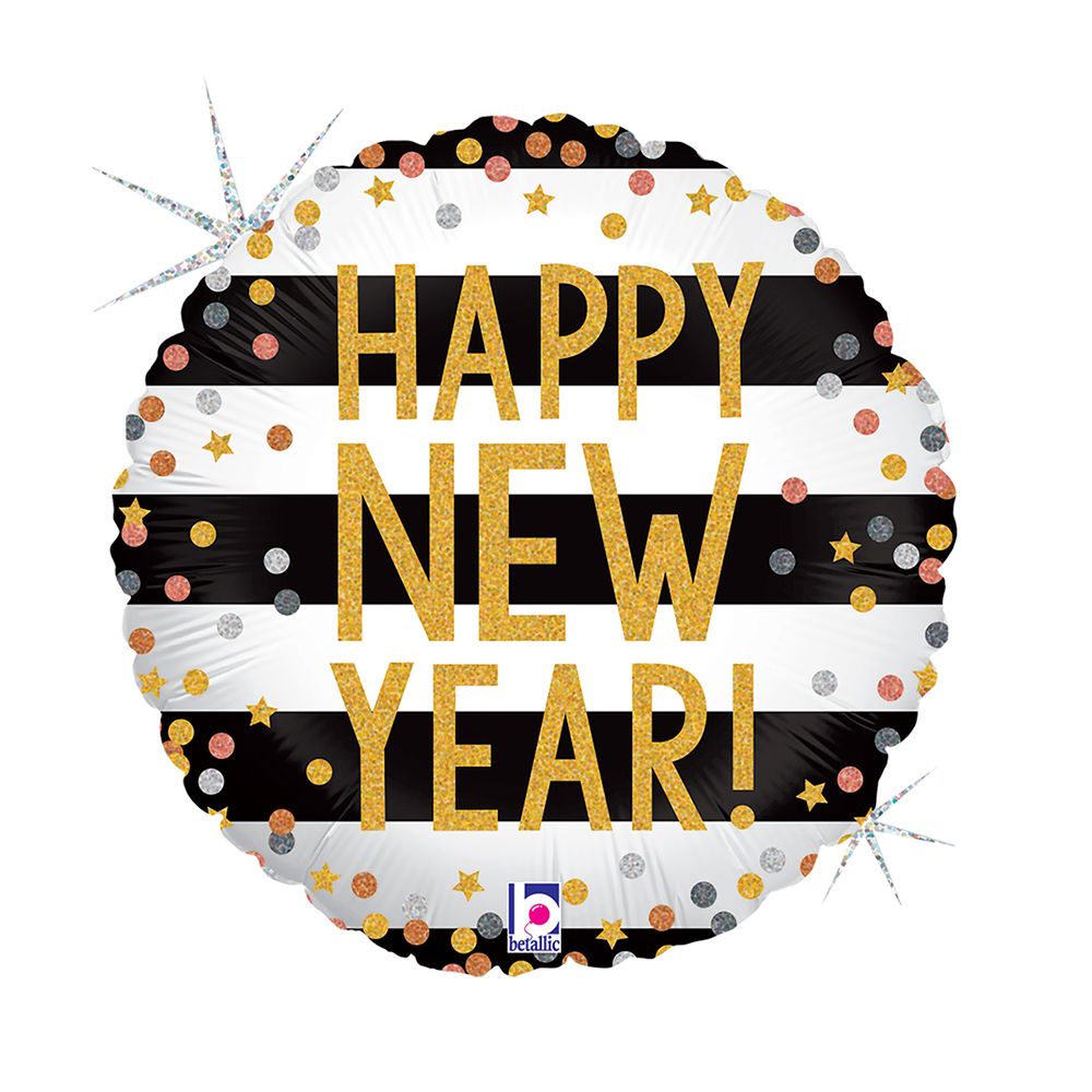 Folija balons round print 18"/46cm 1/1gab New Year Confetti glitter holographic