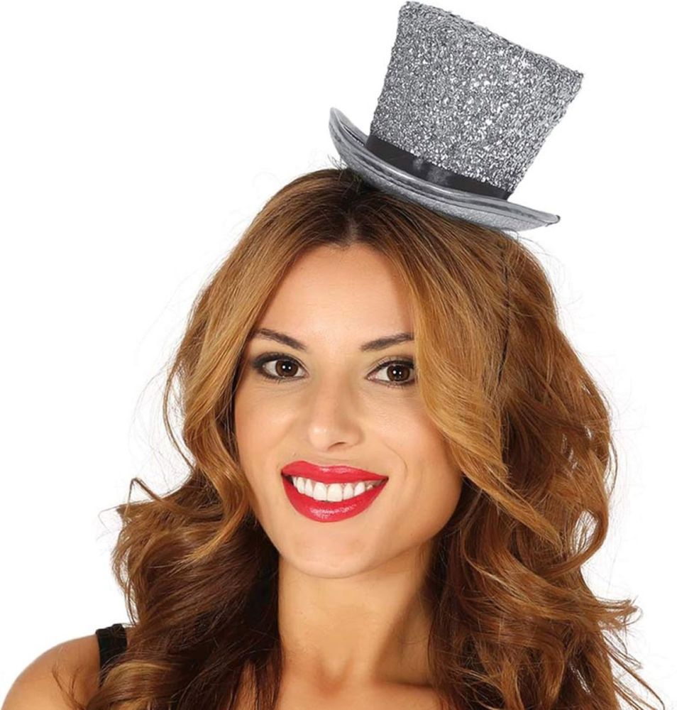 Cepure Mini Cilindrs sudraba ar spīdumiem