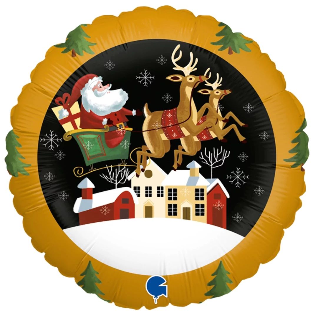Folija balons round print 18"/46cm 1/1gab Santa in Sleigh