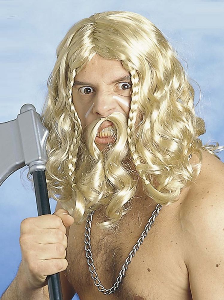 Parūka Viking blona ar ūsām