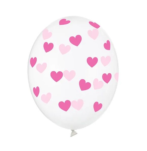 Lateksa baloni print round 30cm/11" 1/50gab Hearts fuchsia/Cristal Clear