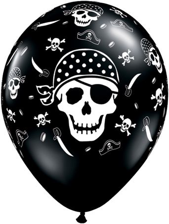 Lateksa baloni print round 30cm/11" 1/25gab Pirate skull&Cross Bones black