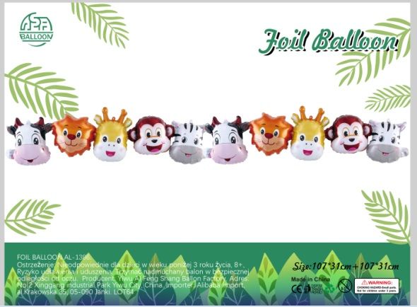Balonu virtene Dzīvnieki folijas