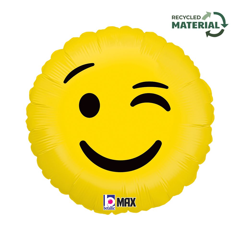 Folija balons round print 18"/46cm 1/1gab Emoji Wink